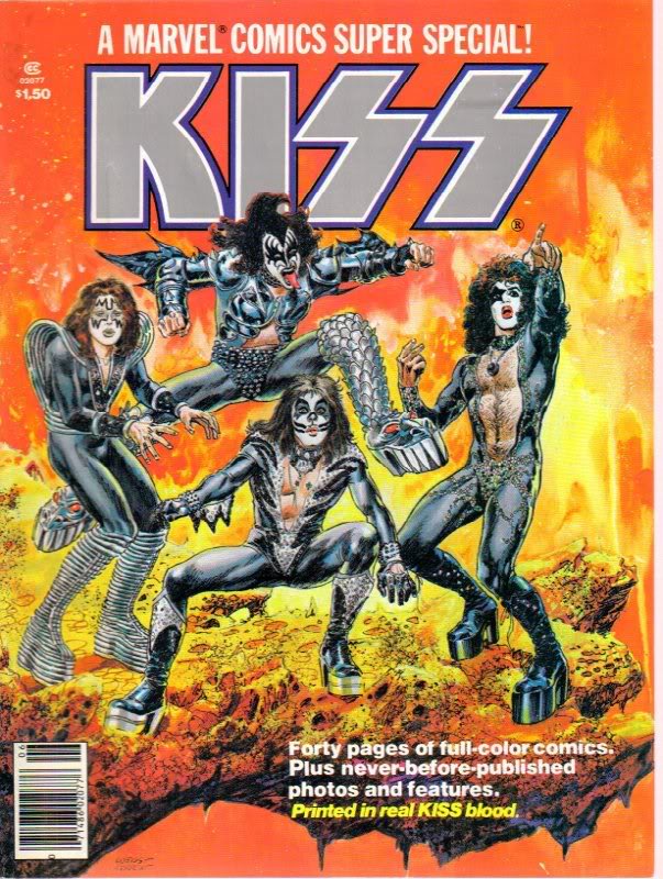 La portada además, la dibujó el gran Gray Morrow (Capitán América). Y sin duda, una de las características que más llamó la atención es que en ella, se puede leer “Printed in real Kiss blood”, es decir: la tinta que utilizaron para colorear la tapa del comic tenía auténtica y real sangre de los integrantes de la banda neoyorkina. Para no creerlo.