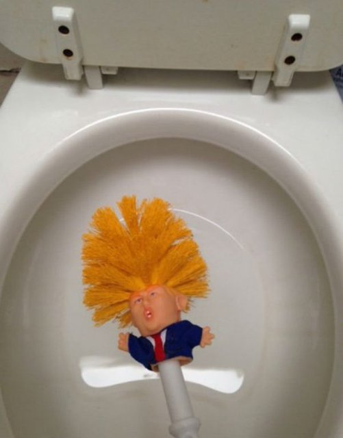 Limpiar el inodoro no es una tarea agradable, pero hay un nuevo producto que acaba de ser lanzado al mercado que lo puede hacer mucho más entretenido. Se trata del nuevo cepillo de baño con el rostro y cerdas puntiagudas, que simulan el pelo rubio, del presidente de Estados Unidos, Donald Trump.