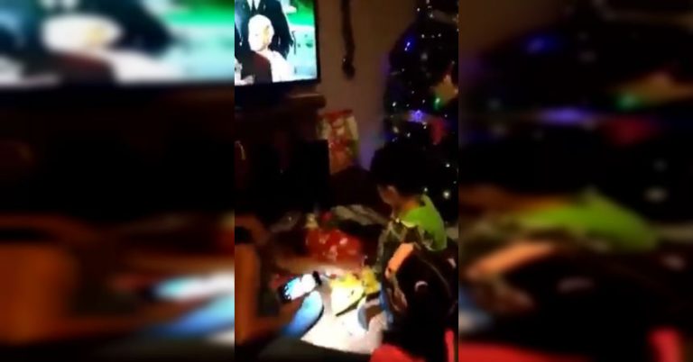 Al momento de abrir su regalo, el niño no puede más de la emoción al recibir este peculiar pero querido regalo.