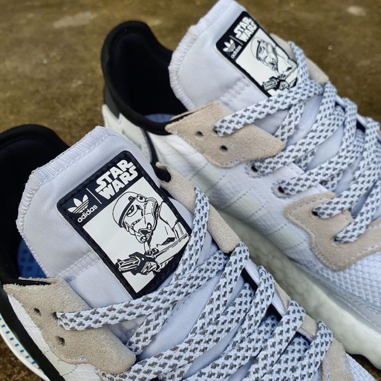 R2-D2 está representado dentro del estilo Nite Jogger del paquete, acompañado de una contraparte con temática Stormtrooper. Cada par viene acentuado con detalles reflectantes y logotipos del mismo nombre que incluyen un amuleto de encaje, un sello personalizado de Adidas con el personaje y las crestas asociadas que se encuentran en el talón superior del zapato. Impreso en el estilo Boost of the Stormtrooper, se lee "¡Open the blast doors!"