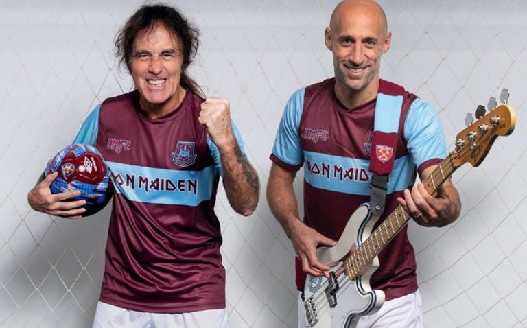 El conjunto británico, cuyo bajistam, Steve Harris, es fanático del West Ham, presentó un conjunto de polera, pantalón y medias, que mezclan al club londinenese con Iron Maiden.