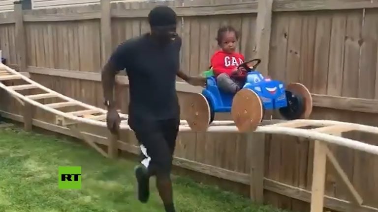 Con mucho ingenio un abuelo de San Antonio,Texas, Estados Unidos, construyó una mini montaña rusa para que su nieto pudiera disfrutar, a pesar del confinamiento que se vive a nivel mundial debido al coronavirus.