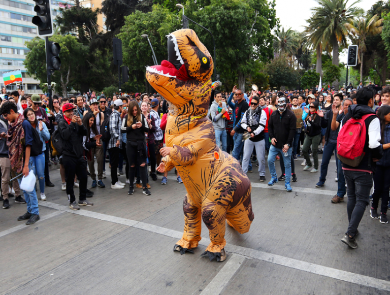 “Corre Dinosaurio” fue uno de los personajes emblemáticos que comenzaron a aparecer en las manifestaciones del estallido social y hoy, no quiso quedarse fuera de las elecciones. Sin embargo, carabineros le prohibió la entrada al lugar de sufragio, el que correspondía al colegio Pasionista de Quilpué. Además, le hicieron varios controles de identidad porque, según las autoridades, con el traje que llevaba puesto no se podía ver de forma correcta y clara su cara.