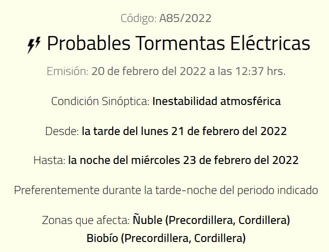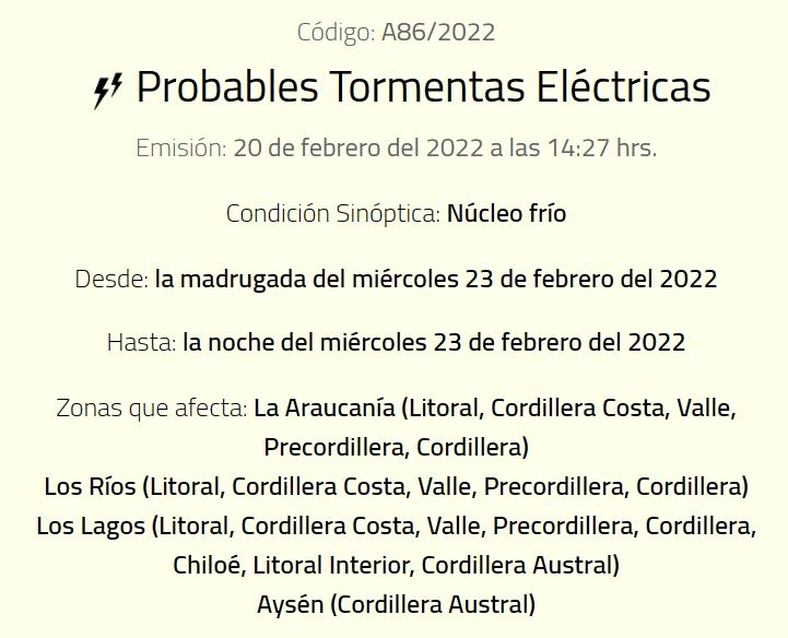 Arica y Parinacota, Tarapacá, Ñuble, Biobío, La Araucanía, Los Ríos, Los Lagos y Aysén serían las regiones que verían tormentas eléctricas durante estas semanas. Sin embargo, no se descarta que estas también puedan acompañar a la lluvia de la Región Metropolitana.
