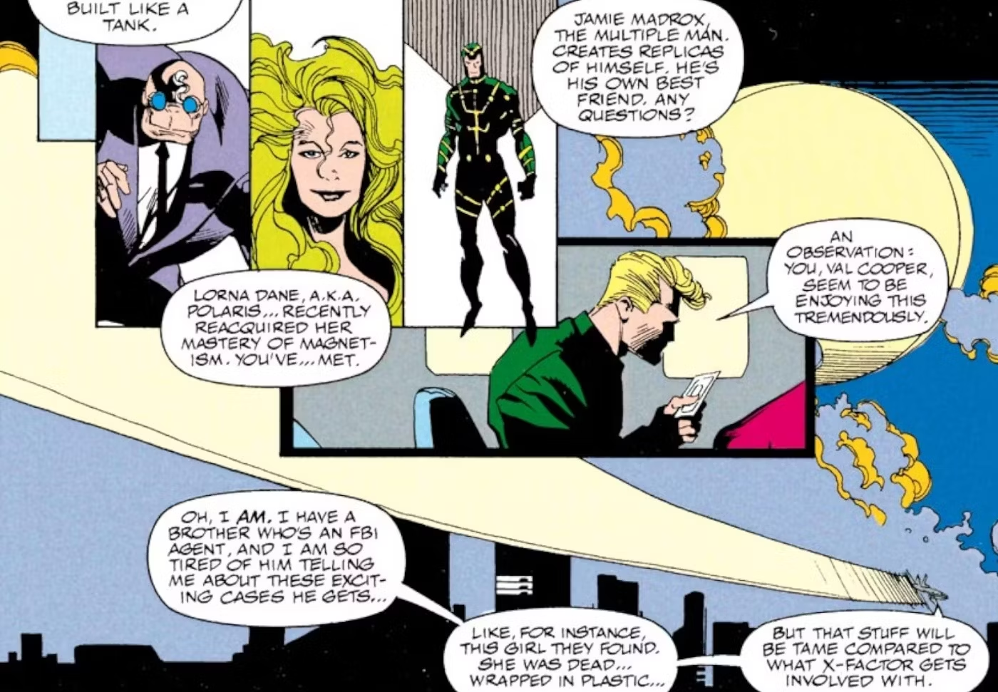 La conexión se reveló en el número #71 de X-Factor, una serie spin-off de X-Men, donde nos introducen a Valerie Cooper, una agente del Gobierno que es aliada de los superhéroes. En este tomo, la agente habla sobre los extraños casos a los que se enfrenta su hermano, que también trabaja para el Gobierno.