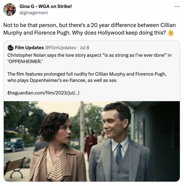 "No quiero ser esa persona. Pero hay una diferencia de 20 años entre Florence Pugh y Cillian Murphy. ¿Por qué Hollywood sigue haciendo esto?", "Dejen que las mujeres envejezcan", escribieron algunos usuarios por la diferencia entre los actores.