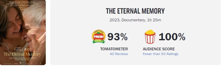 "Al contar una historia profundamente personal en un profundo contexto político, La Memoria Infinita ofrece un testamento conmovedor sobre el poder del amor y el recuerdo", señala el positivo consenso por parte de los críticos.