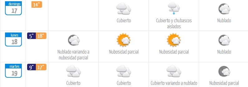 Según se informó, el lunes 18 de septiembre tendríamos nubosidad parcial durante gran parte de la jornada. Respecta a las temperaturas que se esperan para este día, se anticipan mínimas de solo 5° y máximas de 18° para el lunes.