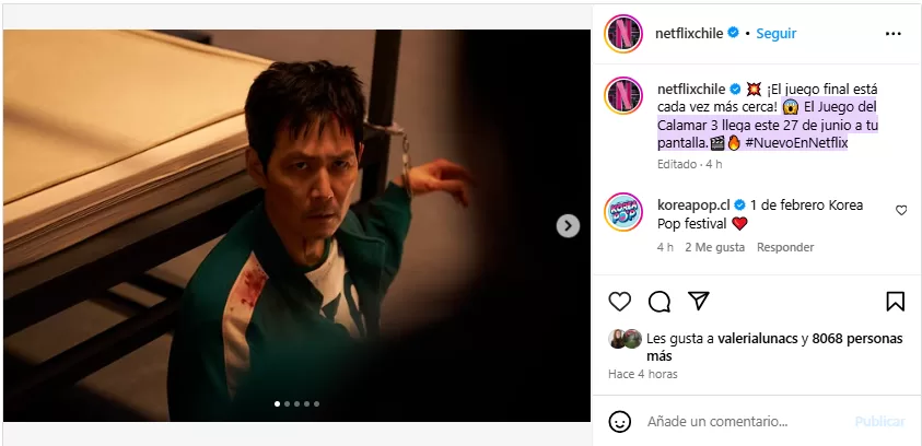 Por su parte, el Instagram de Netflix Chile se unió al anuncio de la fecha de estreno en nuestro país.