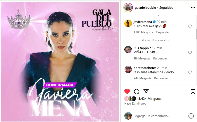 Durante las últimas horas, la cuenta ha subido a nuevas celebridades confirmadas, y por supuesto, el post que anuncia a Javiera Mena causó furor. En este no pudieron faltar comentarios como "Viña de lesbos" y "hoy ganaron las lesbianas".