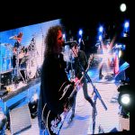 *Sobre el escenario habían solo instrumentos y accesorios de color negro, incluyendo toallas y hasta la rejilla de los micrófonos.