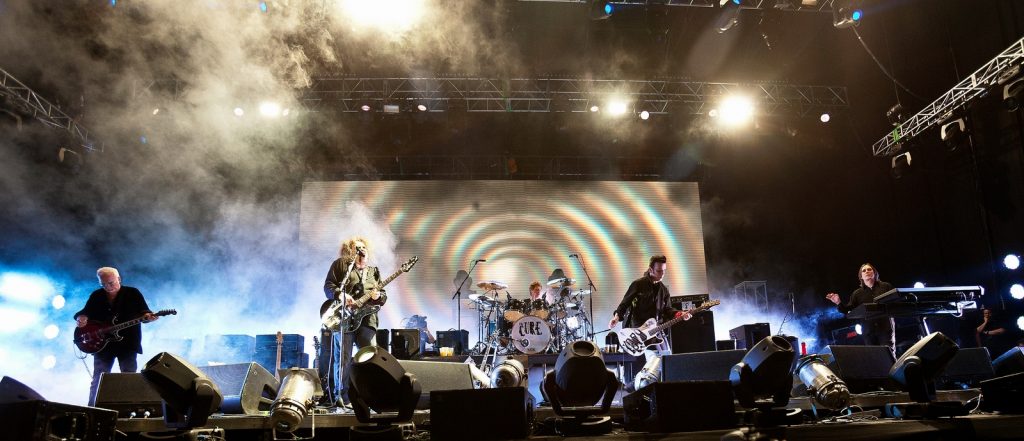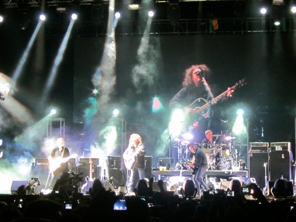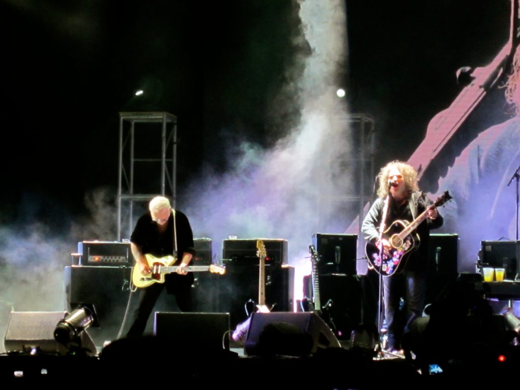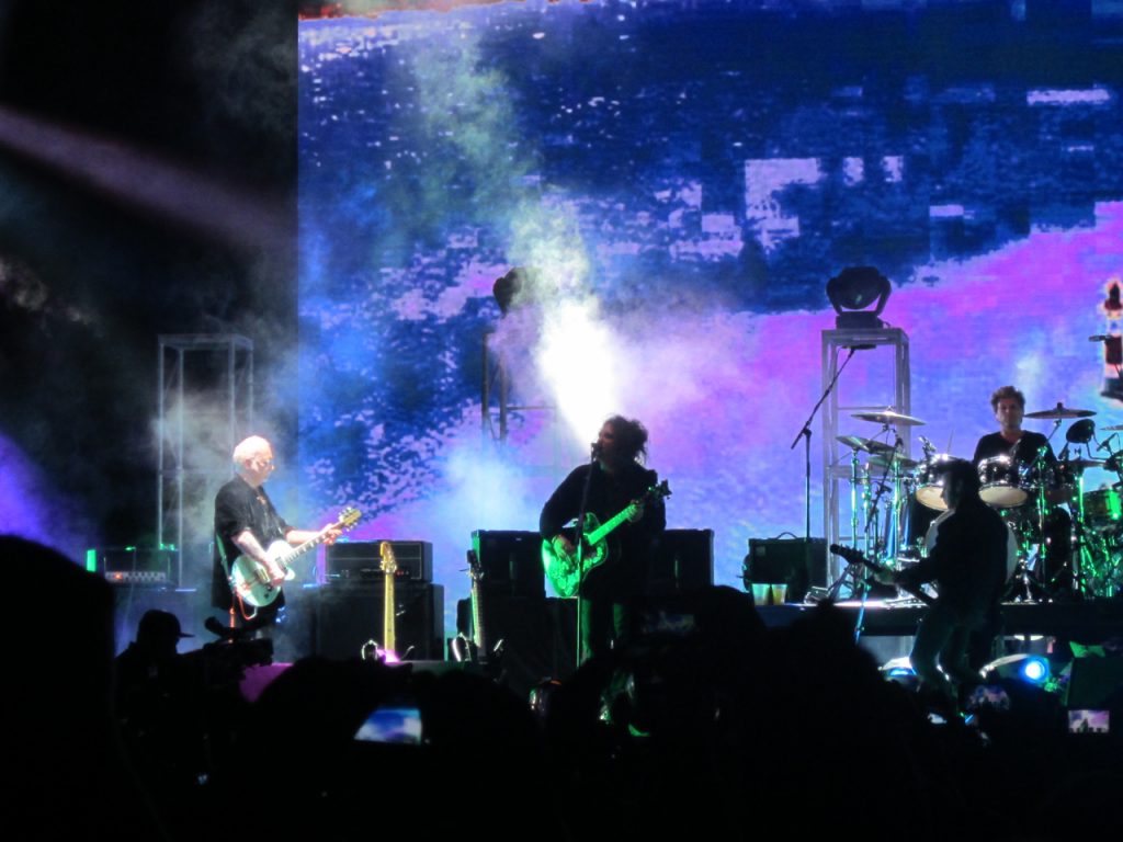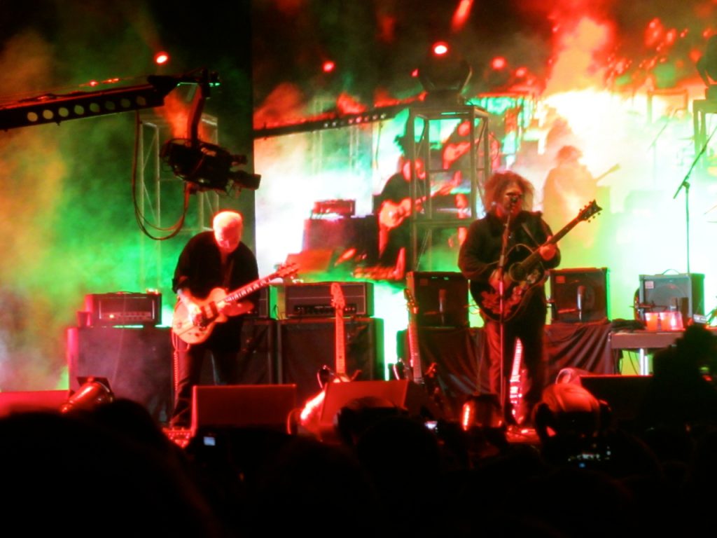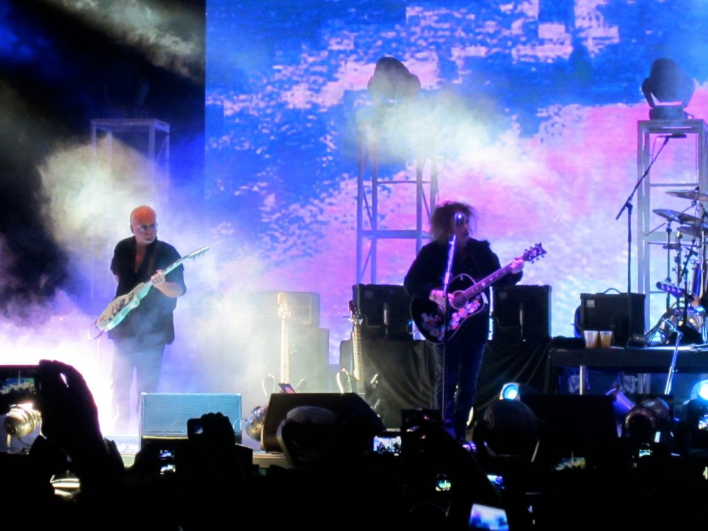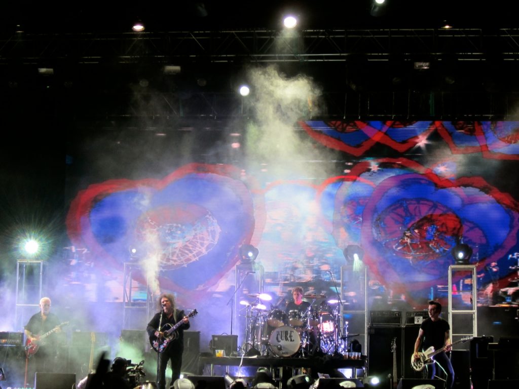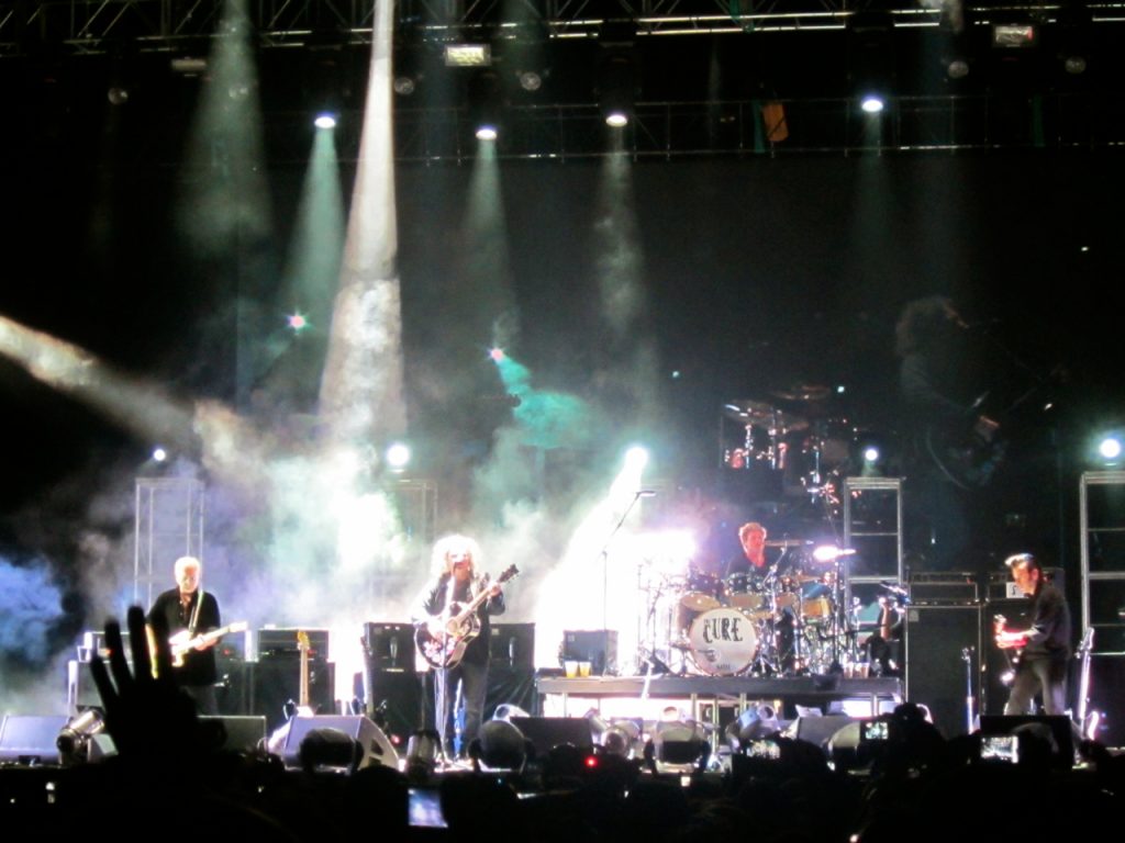 Y se viene The Cure. A esta altura, yo esperaba que entrara la banda primero y luego de un show de luces, humo y harta pirotecnia apareciera la gran estrella de la noche… Y no estuve ni cerca. Los músicos entraron todos juntos y Robert en medio de ellos, sin mucha ceremonia, muy respetuoso y saludando muy cordialmente antes de partir con “Open”. En ese momento se me cayeron todos los prejuicios, primero porque la calidad vocal de Robert Smith es impactante y, segundo, porque la banda suena un cañón más allá de la tecnología de sonido que se usa hoy. Si una banda es de cartón se nota y acá no fue el caso, son tremendos.