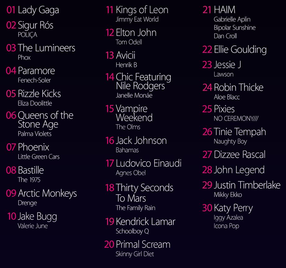 Durante 30 días nuestros oídos se llenarán con la mejor música del planeta. Artistas como Sigur Rós, The Lumineers, Queens Of The Stone Age, Phoenix, Arctic Monkeys, Kings Of Leon, Vampire Weekend, Jack Johnson, Primal Scream, Haim, Ellie Goulding, Pixies, Justin Timberlake y muchos más se darán cita no solamente en el mítico The Roundhouse en Candem Town, Londres, sino que a través de nuestros computadores o dispositivos iOS a través de la aplicación gratuita del festival.