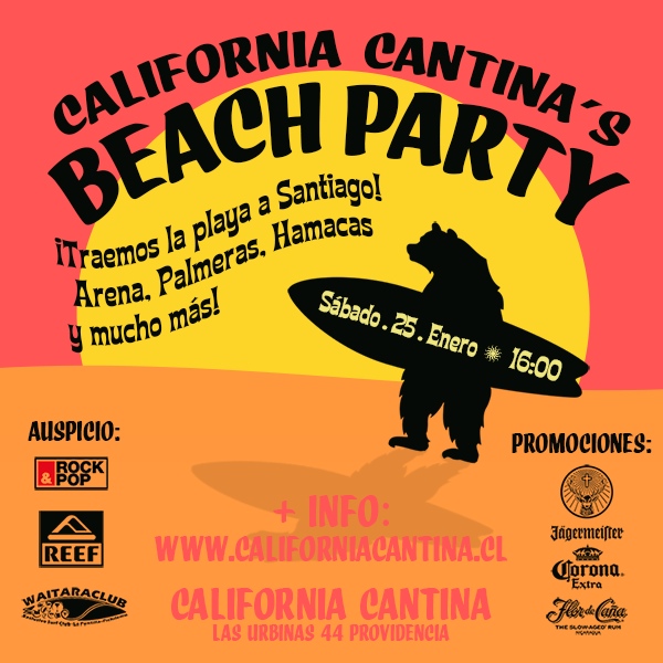 Santiago por estos días es un horno insufrible... Pero California Cantina, Reef y Waitara Club te invitan a escapar por un momento en la espectacular California Cantina's Beach Party.