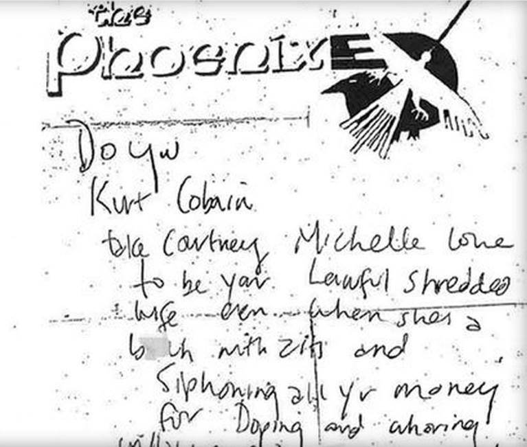 El papel fue hallado en la billetera del músico al momento de su muerte en 1994, donde se burla de sus votos matrimoniales, haciendo una sátira del tradicional discurso cristiano: “¿Kurt Cobain, aceptas como tu amada esposa ante la ley a Courtney Michelle, incluso cuando es una perra con acné que gasta todo tu dinero para doparse y prostituirse?”, escribió el músico