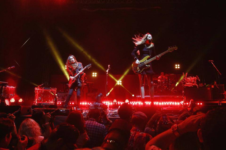 La noche cayó en Los Angeles y con ella llegó HAIM. Llevaba meses deseando ver en directo a las hermanas californianas y la verdad es que no defraudan. La diferencia entre su disco y sus directos es grande: Su álbum de debut (que por cierto ha arrasado en Estados Unidos) es una obra maestra del indie pop pero sus conciertos son una obra maestra del Rock. Y es que por momentos tuve la sensación de estar viendo a Metallica encima del escenario. No es broma. Se nota que es su primera gira y que todavía tienen cosas por pulir (guitarras y harmonías) pero este grupo tiene grandes canciones y en la música eso es lo que verdaderamente importa.