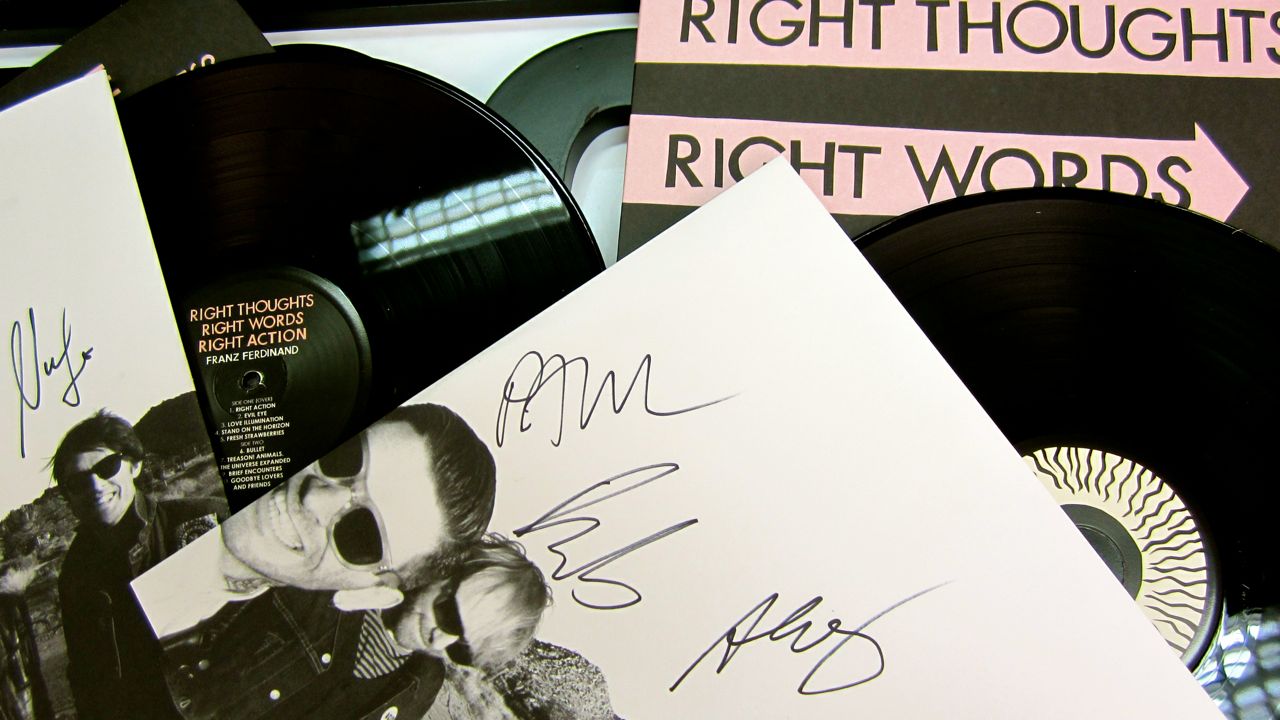 Así que fuimos, hablamos con Alex, un amigo de la 94.1, que a su vez habló con otros 3 amigos. Cuando volvió, nos entregó unas copias de Right Thoughts, Right Words, Right Action, el último disco de una banda escocesa llamada Franz Ferdinand que, oh, sorpresa, venían firmados por todos los integrantes de la banda.