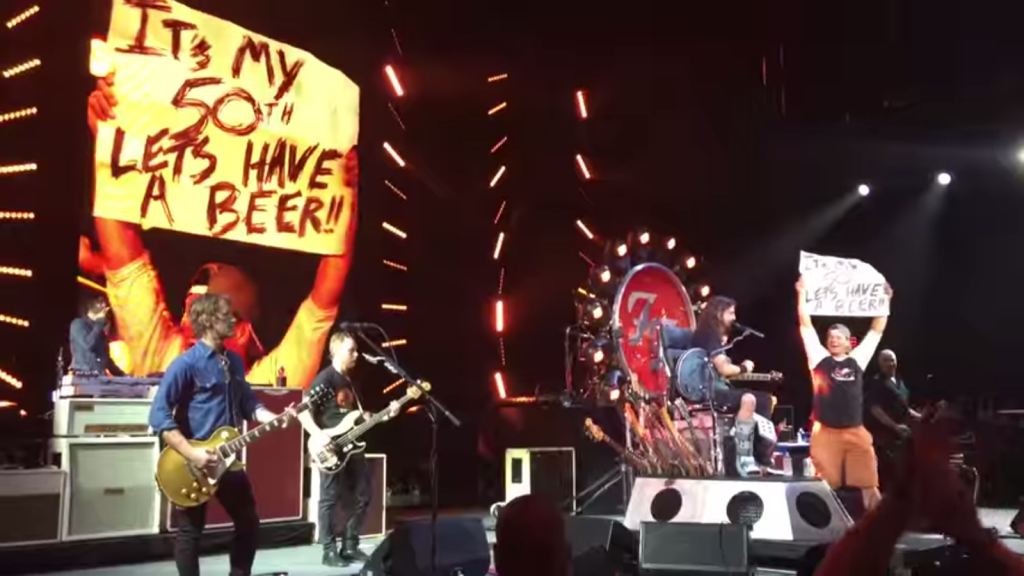 Ya son clásicas las intervenciones del líder de Foo Fighters en sus conciertos con el público. Te contamos de aquella vez donde subió a un fanático llorando y ahora, en un concierto en Clarkston, Michigan, un hombre pasó prácticamente todo el show alzando un letrero que decía "Estoy cumpliendo cincuenta. Tomemos unas cervezas".