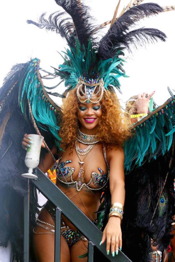 Mientras miramos por la ventana y vemos como cae la lluvia, Rihanna lo pasa bomba en el carnaval de Barbados.