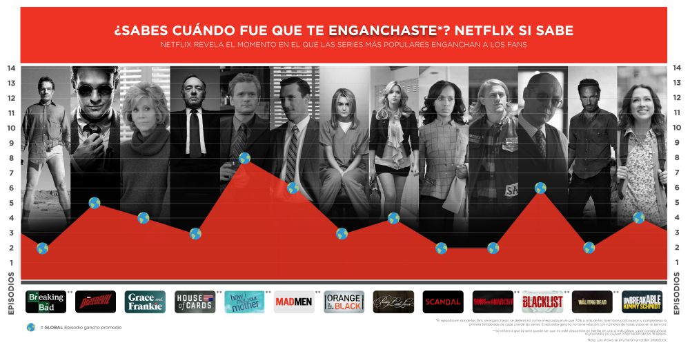 Netflix se planteó una pregunta bien interesante: en qué momento nos hicimos fanáticos de una serie. Por lo mismo, elaboró un estudio que considera las primeras temporadas de algunas de las series más importantes de la actualidad, incluyendo producciones originales.