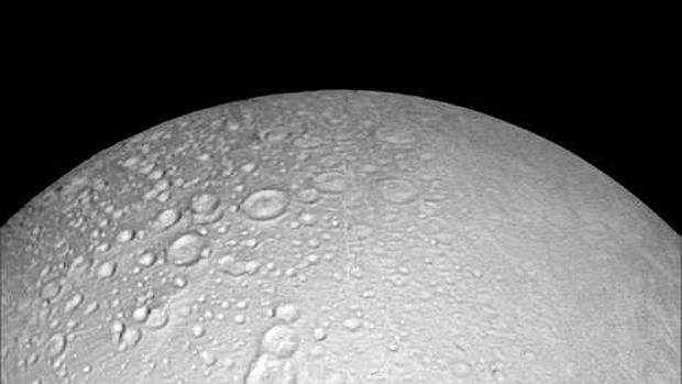 La sonda Cassini se situó a tan sólo 49 kilómetros por encima de la región polar sur de Encélado, la luna helada del planeta. Su misión era captar toda la información posible de la nube de partículas heladas que emanan de su polo sur.