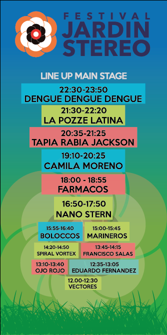 A esto se suma la feria de diseño Stereo Market y foodtrucks. Serán 14 artistas, 24 djs, 2 escenarios y una feria con 20 expositores locales, en una jornada de 12 horas de duración.