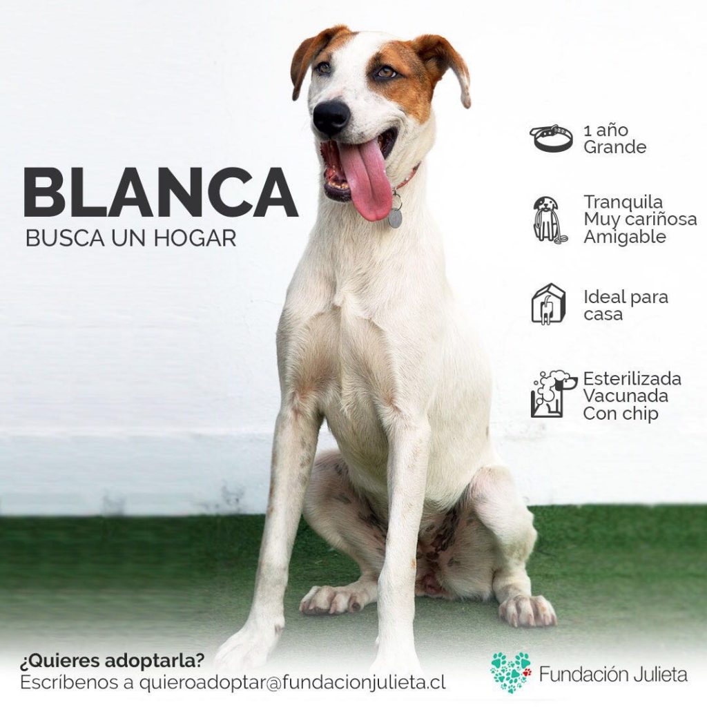 BLANCA es una perrita muy tranquila y cariñosa, que busca mucho amor. Ayúdanos a encontrarle un hogar que le de todo lo que necesita para que siga igual de linda.