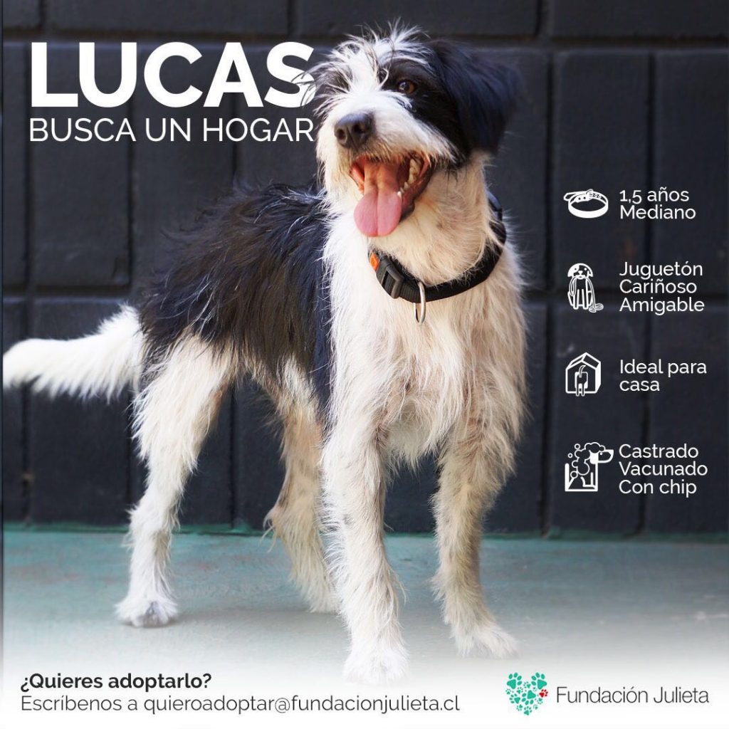 Les presentamos a LUCAS, un perrito mediano ideal para casa, muy cariñoso, juguetón y amigable. Míralo en nuestras redes sociales y ayúdanos a encontrarle un hogar. Si lo quieres en tu vida, escribe a quieroadoptar@fundaciónjulieta.cl.