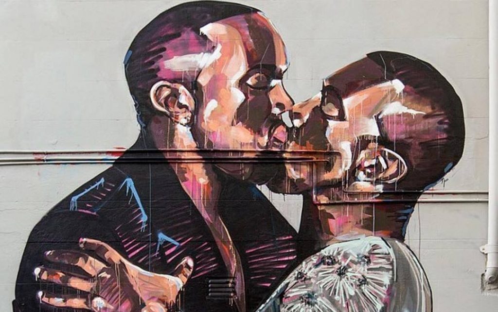 Hace unas cuantas semanas, el australiano Scott Marsh pintó un mural con la imagen de Kanye West besando a Kanye West.