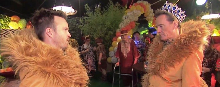 Puro sentido del humor, ironía y actuaciones increíbles. Revisa la rutina completa que además complementan Bob Odenkirk (Saul Goodman en la serie y en su propio ‘spin-off’) y Aaron Paul (Jesse Pinkman).