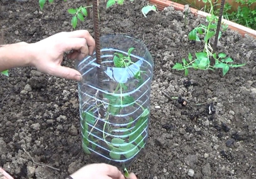 Con el primero, si no tienes dónde sostener el plástico, puedes hacer unos soportes con tubos y codos de PVC; en el segundo caso, es mucho más fácil armar una especie de cajita para poner dentro de ellas las plantas. Otra buena solución es como la de la foto: ¡con botellas plásticas!