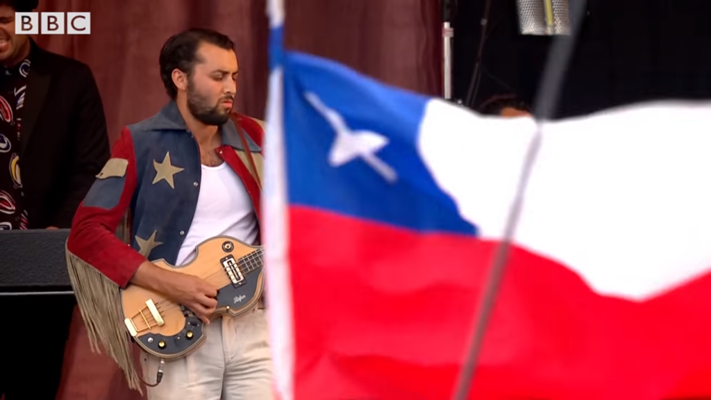 Pero en esta edición 2016 alguien le ganó el lugar entre el millar de asistentes de todos los rincones del mundo. Una bandera chilena logró destacarse en varios momentos del Pyramid Stage, haciendo patria al mismo tiempo que ganábamos la Copa América Centenario.