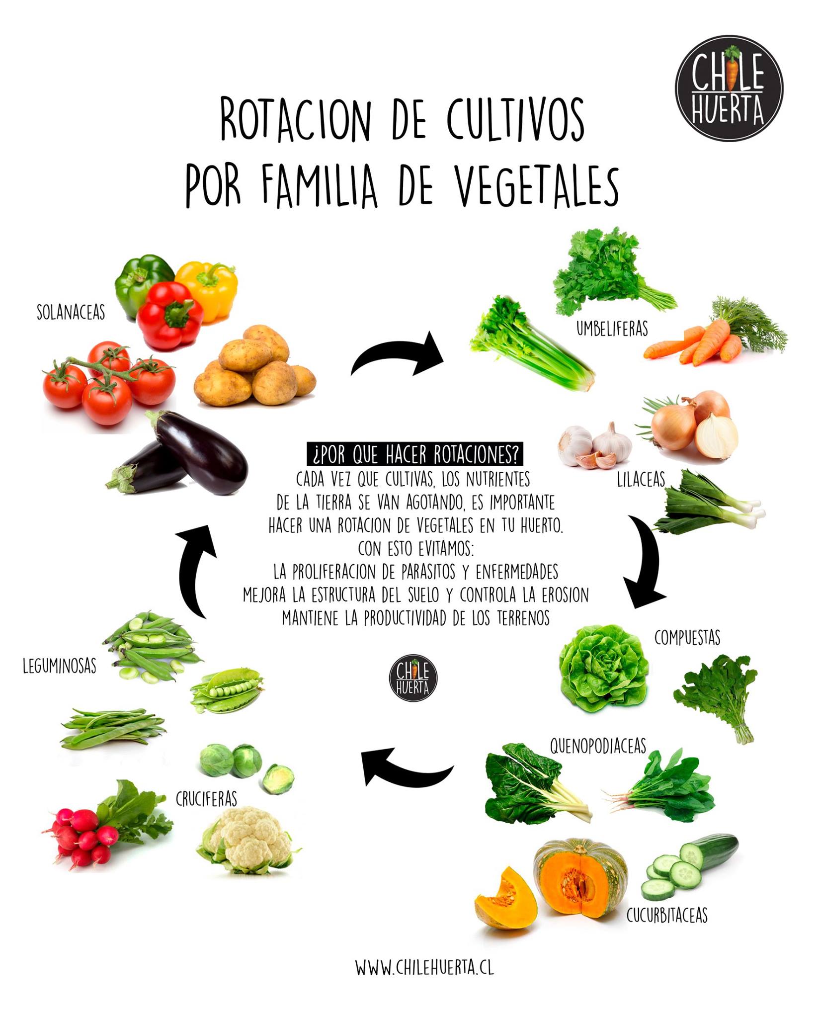 Hay hortalizas que desgastan más los nutrientes de la tierra, y otras aportan algunos que no habían en ella. Por lo mismo es bueno rotar los cultivos para evitar enfermedades y ser más productivos a nivel de suelo. ¿Cómo se hace? En CHILE HUERTA tienen la explicación a través de un fácil esquema. ¡Revísalo acá!