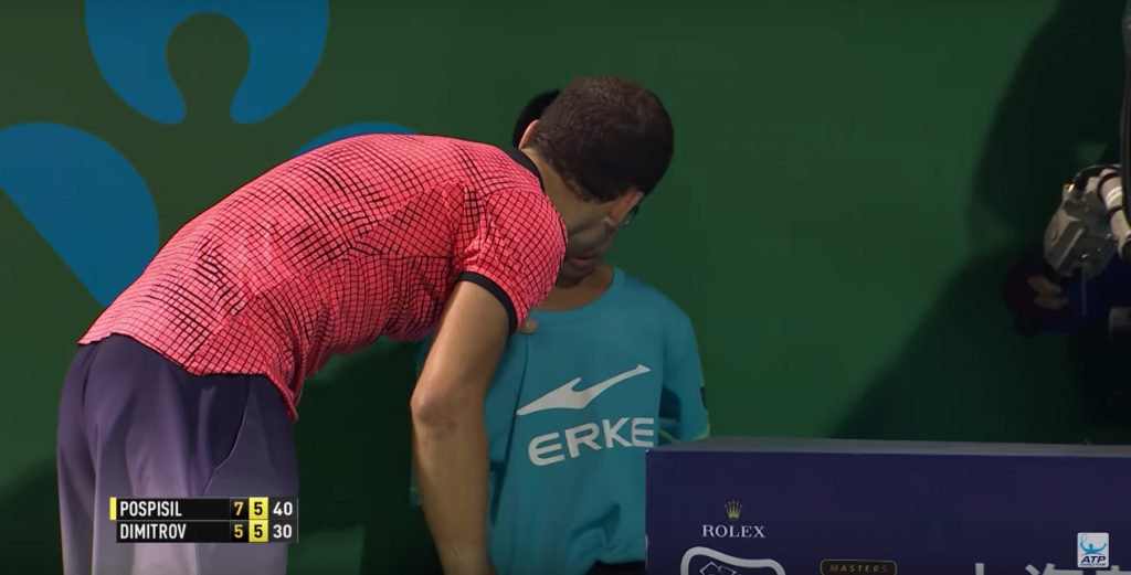 Resulta que esta semana se está jugando el Masters 100o en Shangai, y en medio del partido entre el búlgaro Grigor Dimitrov y el canadiense Vasek Pospisil, quedó un damnificado: un ball boy. Un pequeño que recibió directo en su pecho un violento servicio cuya velocidad se estima en 200 km/hr.