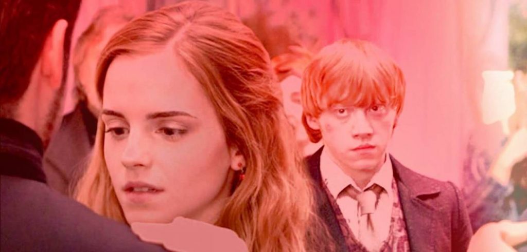 La escena, que estaba respaldada en parte por el libro, no fue llevada a cabo, aunque hubiera sido muy útil dejar más en claro los sentimientos que siempre tuvo Ron por Hermione y que no quedaron del todo claros hasta la última película.