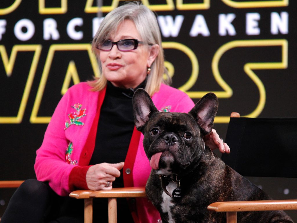 Gary Fisher fue el gran compañero de la fallecida actriz Carrie. Su bulldog francés no la dejó sola ni a sol ni a sombra... ni siquiera en las alfombras rojas.