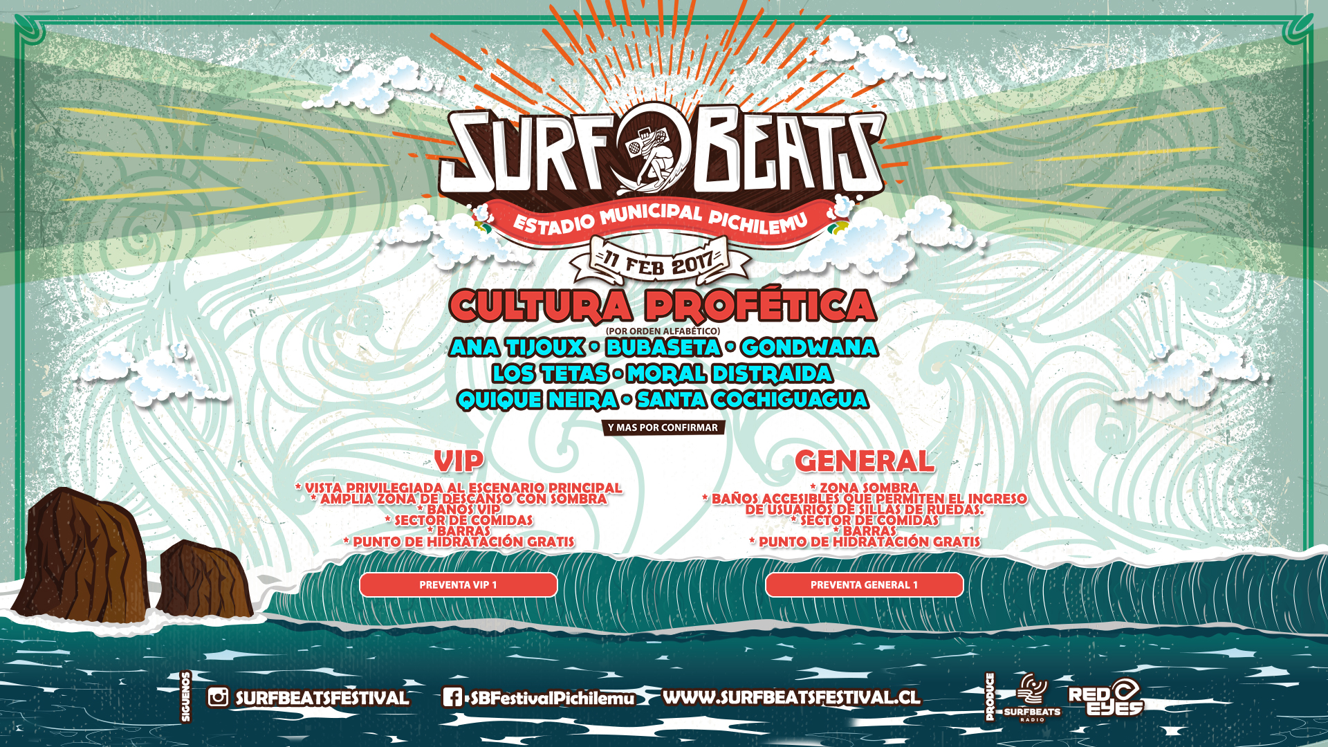 11 de febrero, Pichilemu. Esas son las coordenadas para encontrarte con el Festival Surbeats que promete un día imperdible. Cultura profética, Ana Tijoux, Los Tetas, entre otros, son quienes integran el cartel de este encuentro musical al lado de la playa. ¿Qué mejor?