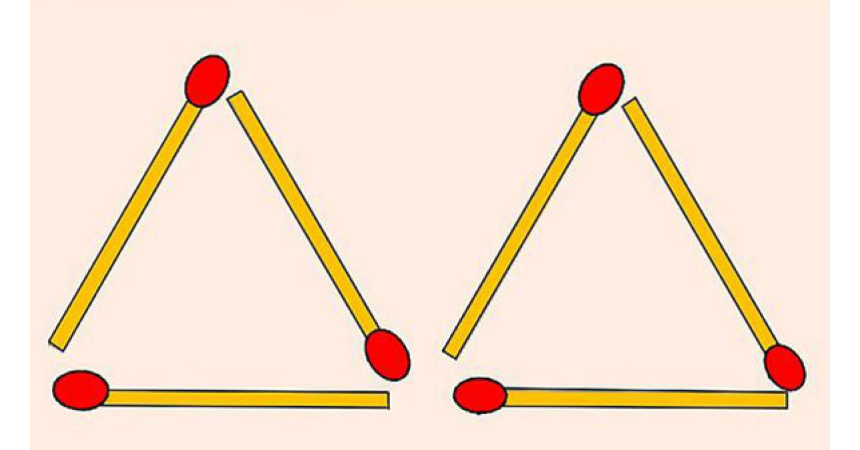 En el ejercicio nos encontramos con dos triángulos compuestos por seis "palitos de fósforo", con estos debes ser capaz de hacer en total cuatro triángulos. Pero el desafío no queda acá, ya que este resultado lo debes conseguir cambiando de posición tan solo dos cerillos.