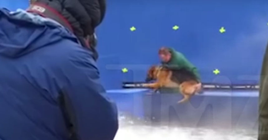 En las imágenes se logra apreciar que tras un fuerte forcejeo se logra apreciar al perro siendo llevado por la corriente del río artificial creado para la grabación. Tras esto el animal pierde el control y termina hundiéndose en el agua, por lo que debió ser socorrido de inmediato por miembros de la producción.
