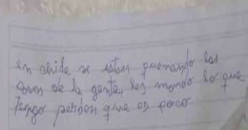 Asimismo, el niño dejó una carta escrita con su puño y letra , en la que decía: "En Chile se están quemando las casas de la gente, les mando todo lo que tengo. Perdón que es poco. Muchos cariños. Soy Santiago".
