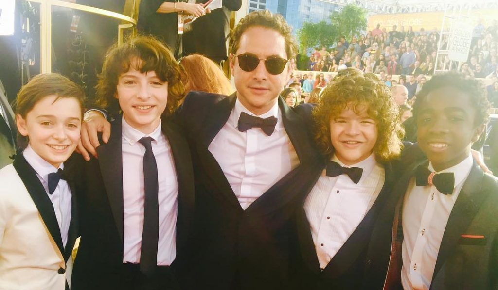 En esa estaban, recorriendo la alfombra roja cuando vieron a los chiquillos que protagonizan "Stranger Things". Por una parte, Larraín se fotografió con cuatro de los protagonistas: Gaten Matarazzo (Dustin), Caleb McLaughlin (Lucas), Noah Schnapp (Will) y Finn Wolfhard (Mike).