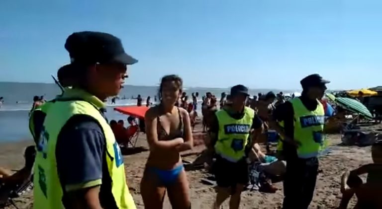 Luego de largos minutos, en los que los efectivos policiales incluso las obligaron a vestirse, las mujeres abandonaron la playa.