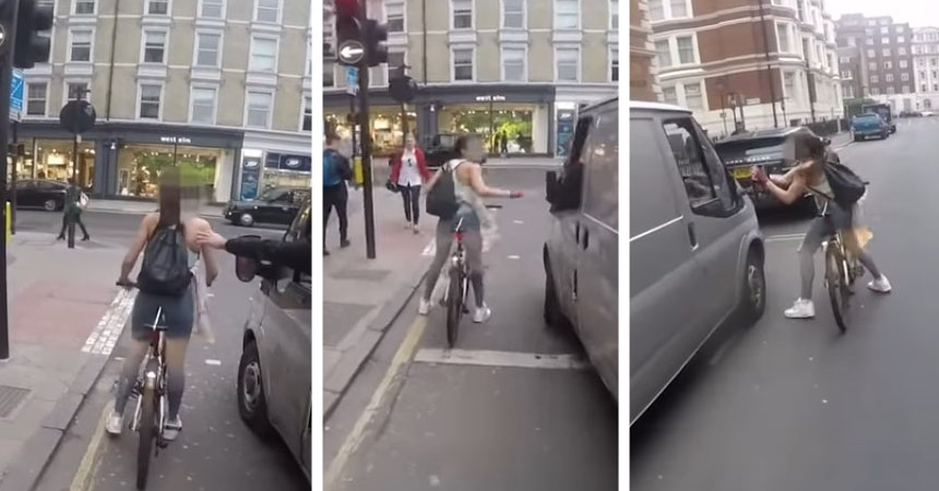 Un video publicado en Reddit se hizo viral por mostrar lo que vivió una chica que andaba en bicicleta por las calles del Reino Unido que se tuvo que enfrentar al conductor de una camioneta, cuenta El Periódico.