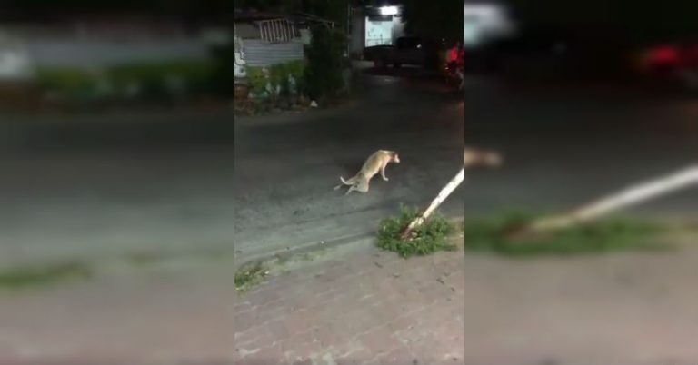 En un comienzo uno pensaría que el pobre animal fue atropellado o tiene distemper, ya que va por las calles arrastrando las patas traseras. Pero pasado unos minutos, se aburre y sale caminando como si nada.
