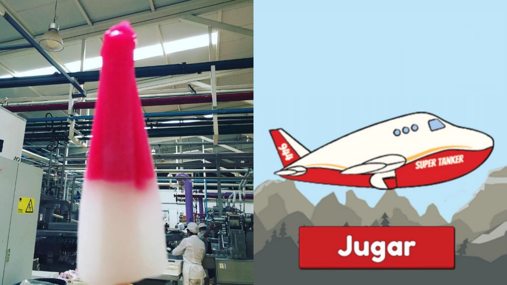 El avión cisterna con mayor capacidad del mundo fue el muso inspirador de más de algún seguidor de Nicolás Santiesteban, el "Willy Wonka" de Fruna, quien buscaba nombre para un nuevo helado blanco y rosado, colores que coincidían con los de la aeronave.