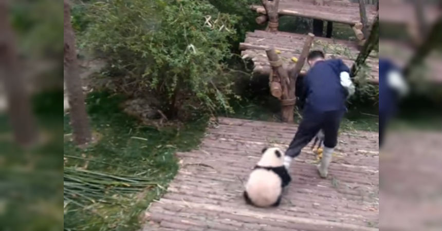 El último en hacerlo fue un pequeño oso panda que no deja trabajar a su cuidador, con el fin de que este le ponga atención y le haga cariño. Durante varios minutos, el hombre intenta que el mamífero lo deje tranquilo, pero este insiste en colgarse de su pierna una y otra vez.