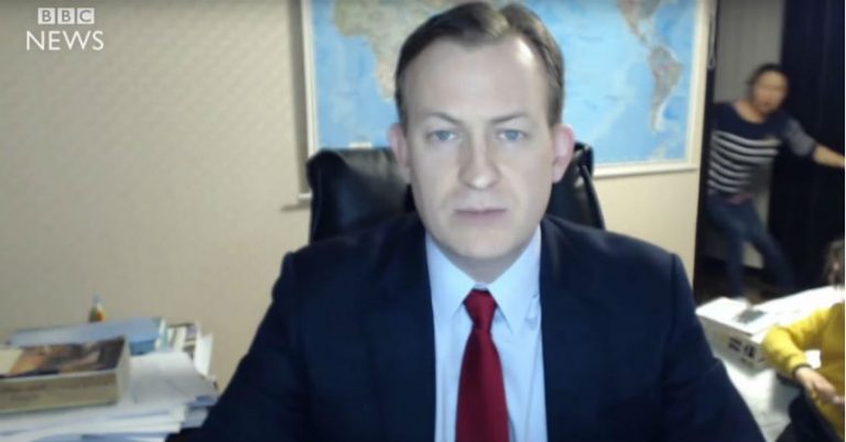 Cualquiera que haya estado medianamente conectado a las redes sociales el pasado viernes habrá visto el video viral de la BBC. Estaban entrevistando al reconocido profesor Robert Kelly, a través de una conexión por cámara en directo desde su casa, cuando de repente sus dos hijos aparecieron jugueteando en la habitación, y luego una mujer con rasgos asiáticos apareció corriendo para sacar a los niños.