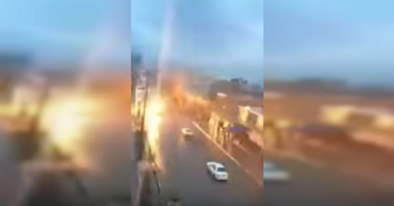 En las imágenes, se ve al vehículo transitando por la vía cuando de pronto cae un relámpago que lo desestabiliza, además de dejarlo echando humo como si algo se hubiese dañado con el impacto.