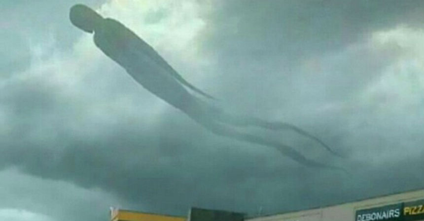 En la imágenes se puede ver una especie de cuerpo humano con largas extremidades, pero carente de manos y pies. Lo más sorprendente es que al ser más denso que la nubes que lo rodeaban, fue mucho más fácil percibirlo.