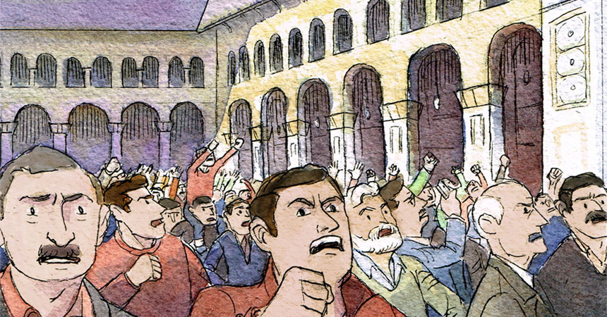 - Entonces, un grupo de adolescentes expresó sus frustraciones. "La gente / quiere / derribar el régimen". Tomaron prestado el eslogan de las nuevas revoluciones en El Cairo y Túnez.